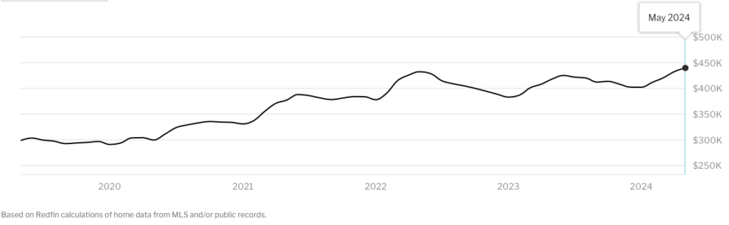 After some mildly good news on mortgage rates, we get news regarding U.S. housing prices. This time, instead of prices going down, as we’d hope to see, we see an all-time high in U.S. home sale prices. According to Redfin.com, the median sale price for a new home in May was $439,716, a record high in the United States.